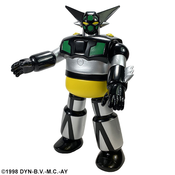 We are proud to announce our licensed Getter Robo 1 ! Getter Robo stands 6.5 inches tall by 4 inches wide by 1.75 inches deep. Articulated at the shoulders, head, elbows and top of legs. Will come in a bag with header card ( not shown ). Black colored version.